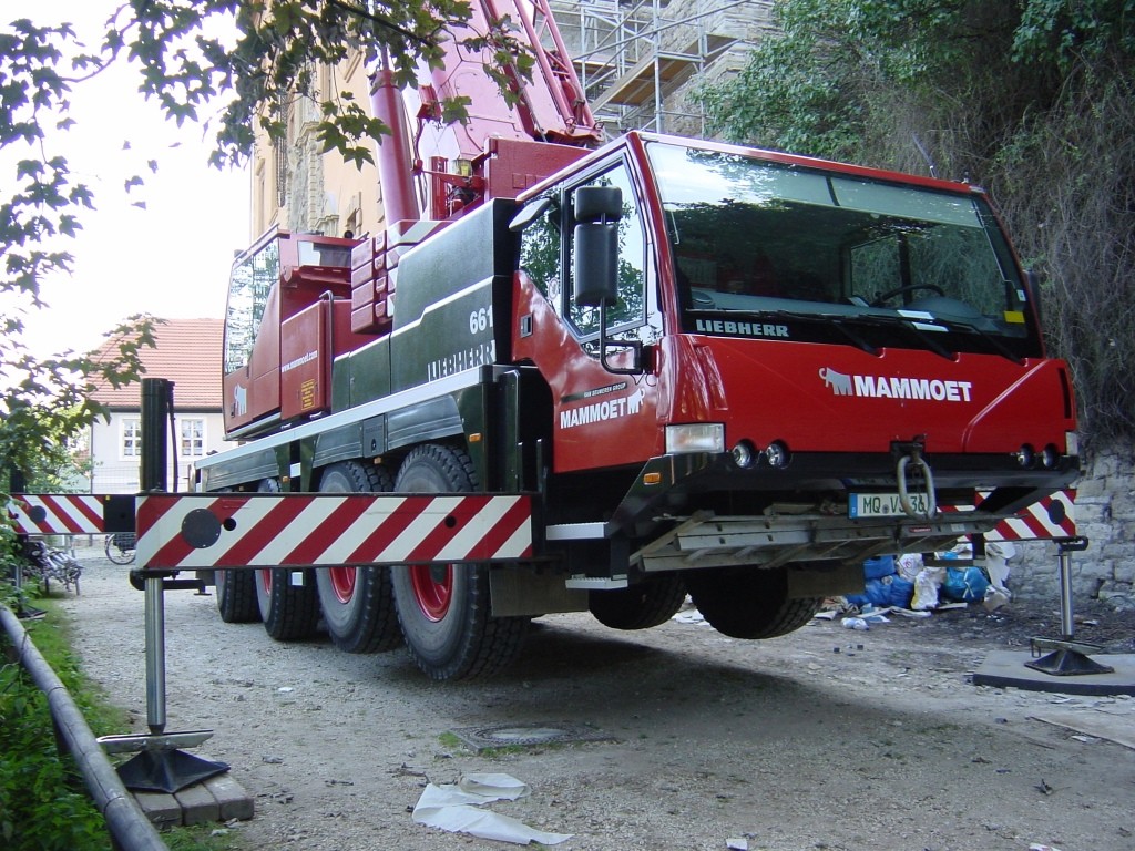 Im Frühjahr 1999 wurde für den Neubau des Arbeitsamtes in Gera ein alter Schornstein abgerissen. Der LTM 1120-1 von Schwerlast Weise kam zum Einsatz.