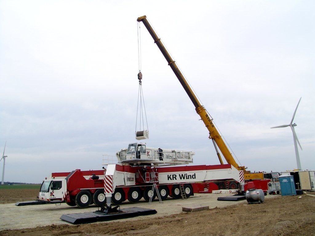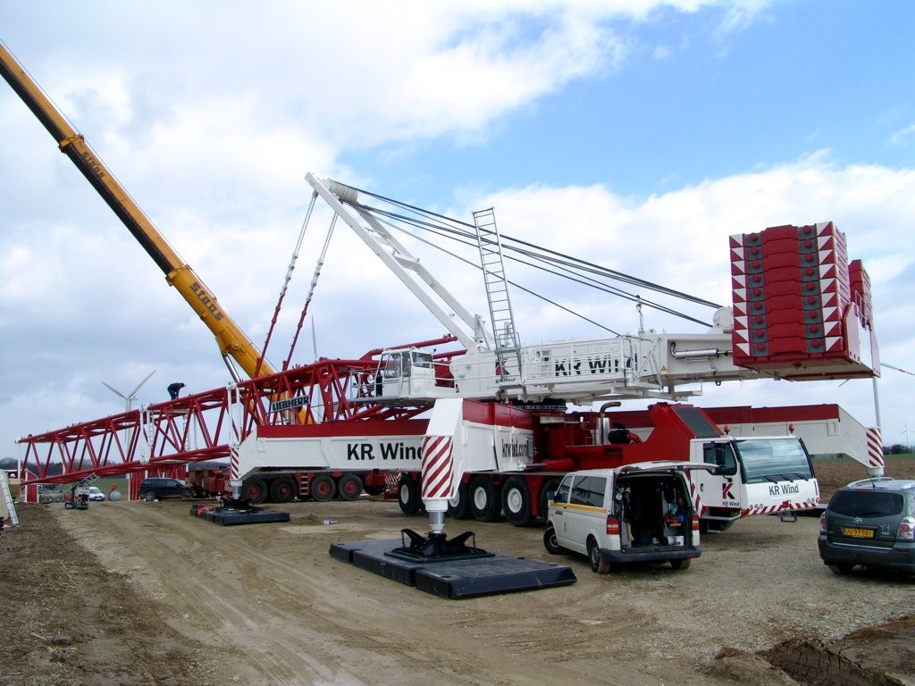 Ersteinsatz des zweiten LG 1750 von KR Wind im Windpark Meineweh. 2 Vestas V 90 wurden hier aufgebaut. Die ersten Bilder zeigen die Zwei Hilfskrane. Den AC 120-1 von Schwerlast Weise der kurzzeitig angemietet war und ein LTM 1160-2 von Staas.