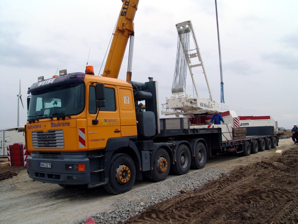 Die ersten Transporte mit Kranteilen waren auch schon da.